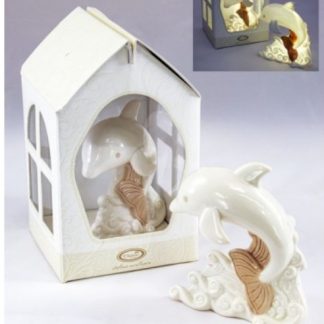 orsetto in porcellana rosa confetto con coroncina, fiocchetto e cuore h. 7,3 cm